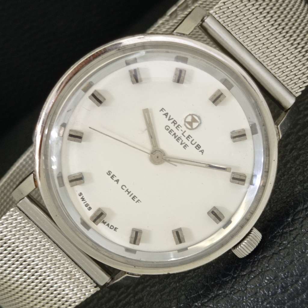 SWISS VINTAGE FAVRE LEUBA 253 SEA CHIEF HAND-WINDING MENS WHITE WATCH a702045-1