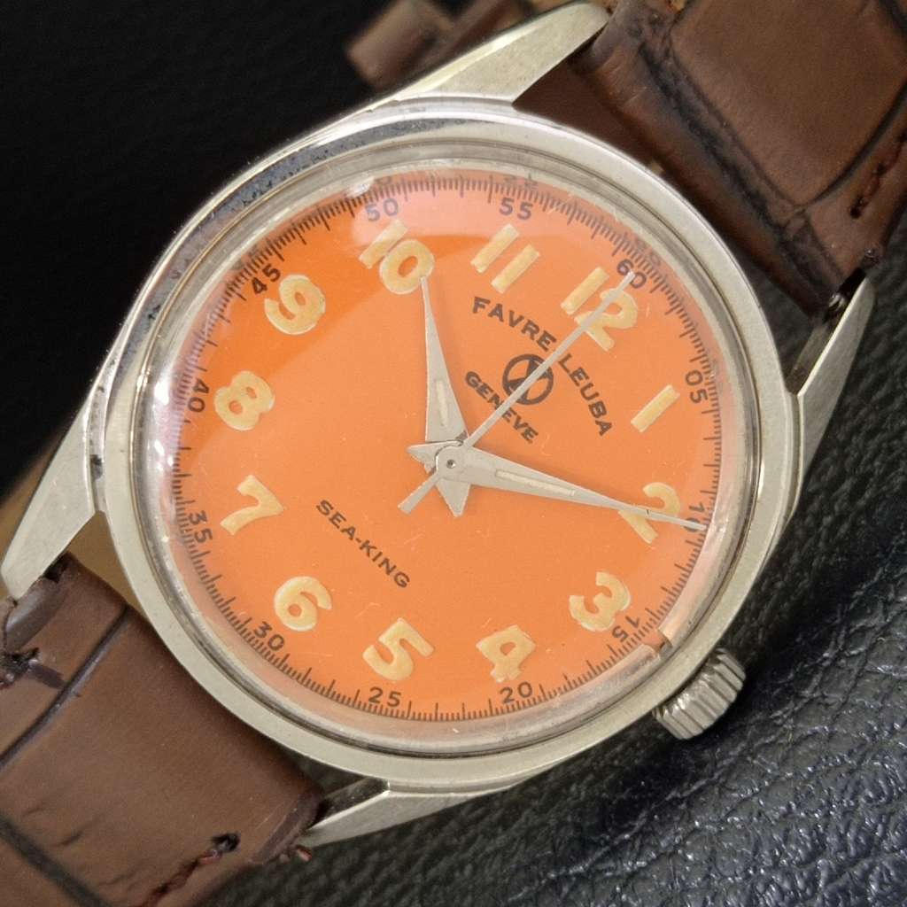 SWISS VINTAGE FAVRE LEUBA SEA KING HAND-WINDING MENS ORANGE DIAL WATCH a703813-1