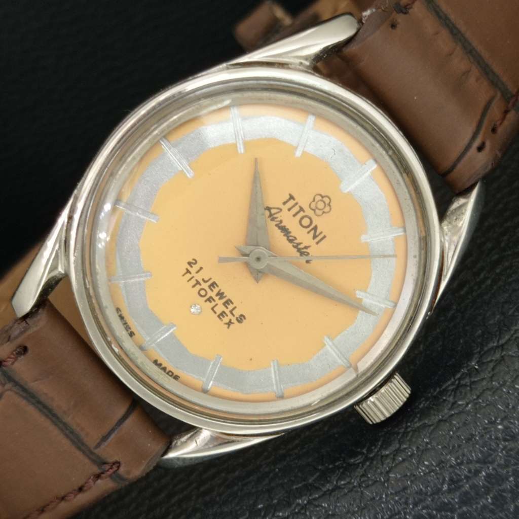 SWISS VINTAGE TITONI AIRMASTER TITOFLEX HAND-WINDING MENS BEIGE WATCH a703221-1