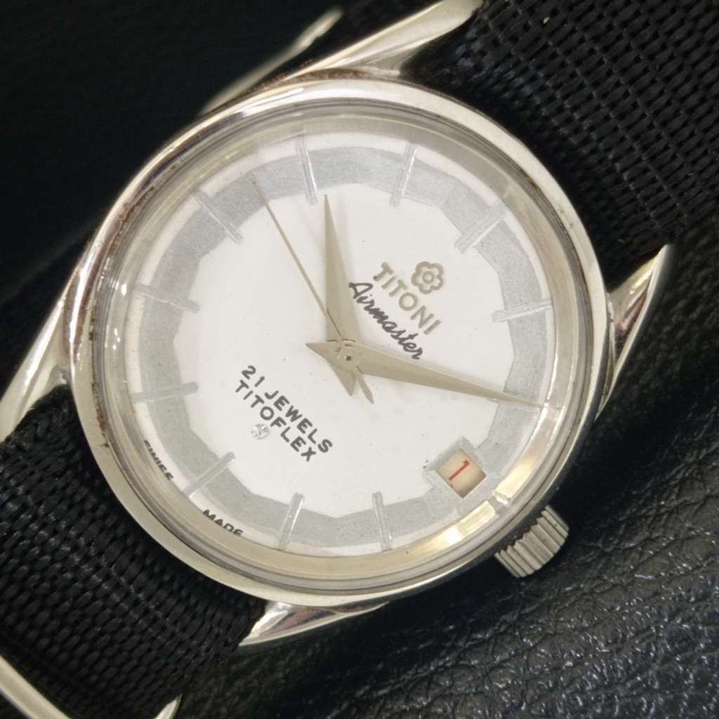 TITONI AIRMASTER TITOFLEX VINTAGE HAND-WINDING SWISS MENS WHITE WATCH a703245-1