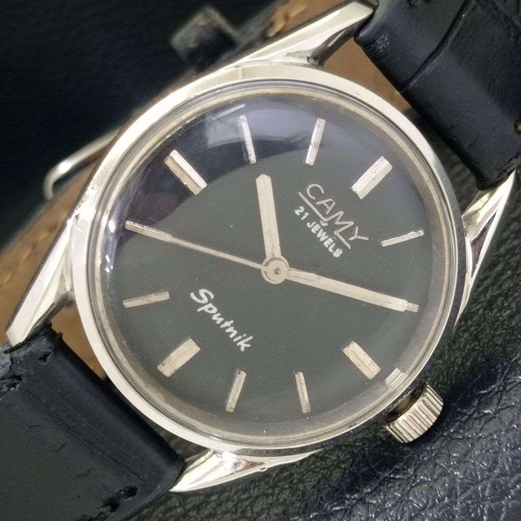 VINTAGE CAMY SPUTNIK HAND-WINDING SWISS MENS BLACK COLOR DIAL WATCH a703026-1