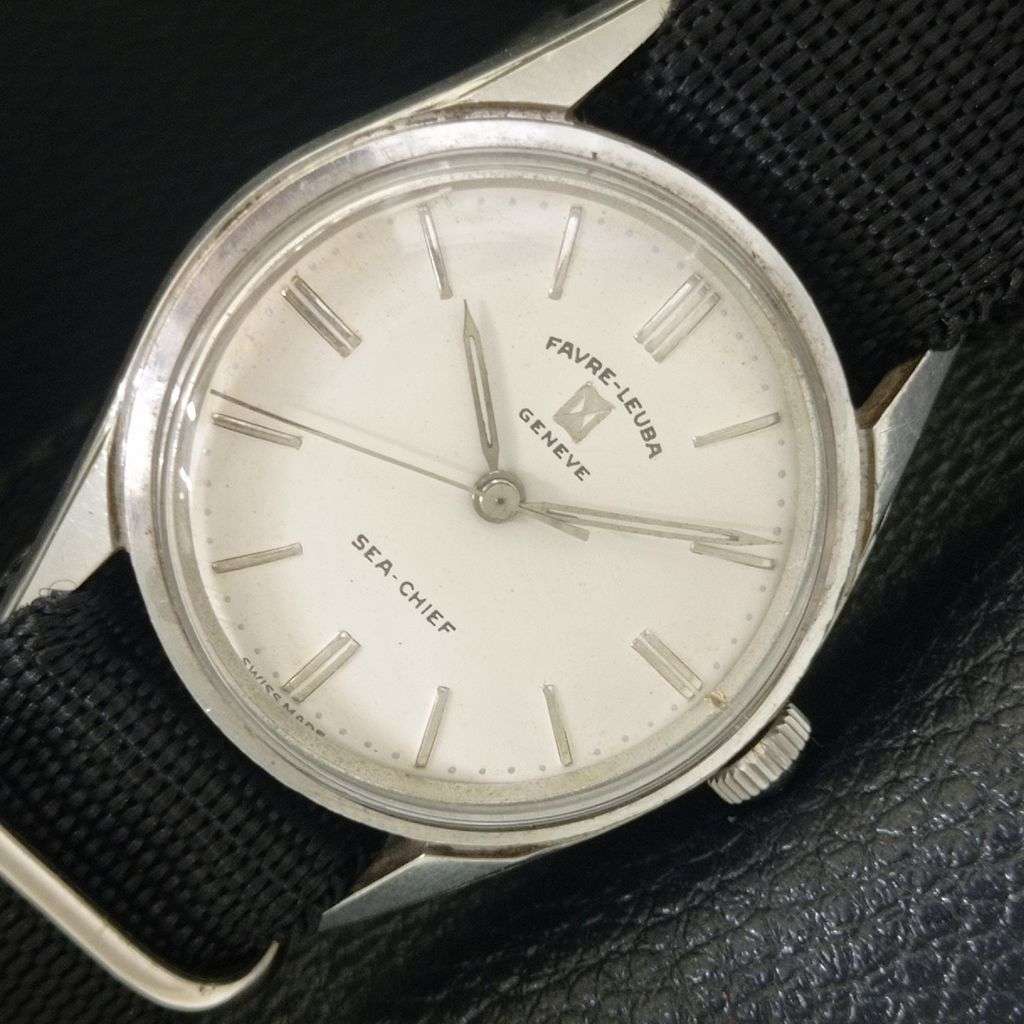 VINTAGE FAVRE LEUBA SEA CHIEF 101 HAND-WINDING SWISS MENS WHITE WATCH a703755-1