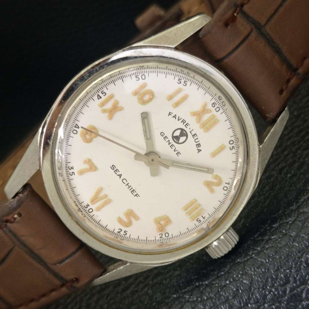 VINTAGE FAVRE LEUBA SEA CHIEF HAND-WINDING SWISS MENS WHITE DIAL WATCH a703811-1