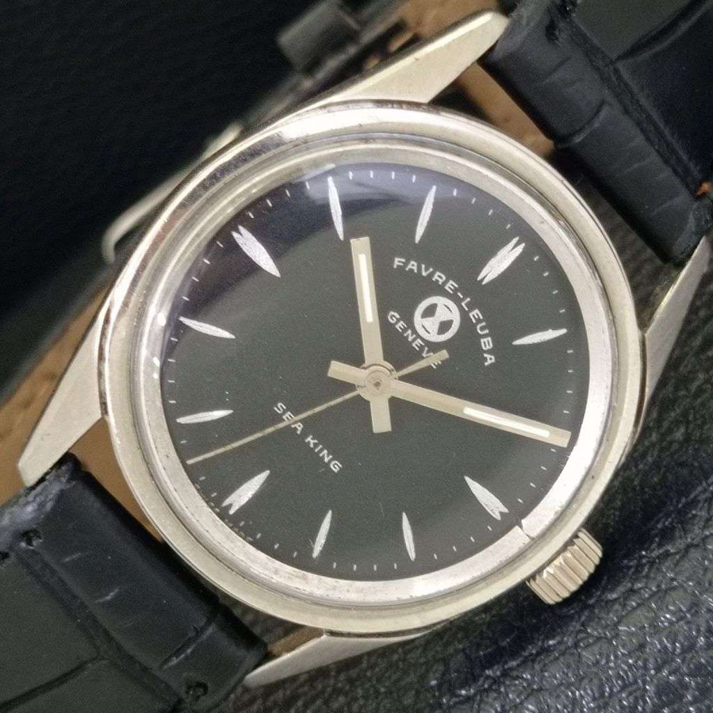 VINTAGE FAVRE LEUBA SEA KING 101 HAND-WINDING SWISS MENS BLACK WATCH a703737-1