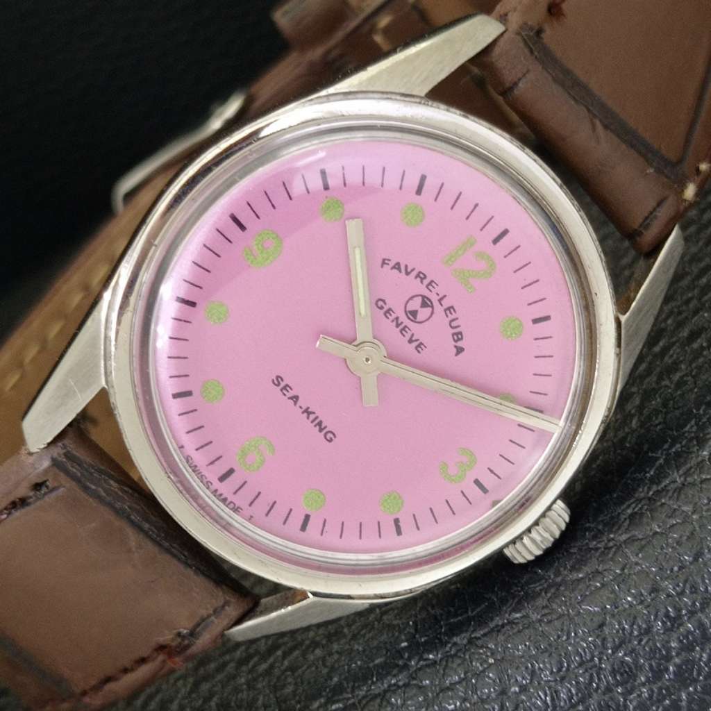 VINTAGE FAVRE LEUBA SEA KING 111 HAND-WINDING SWISS MENS PURPLE WATCH a702011-1
