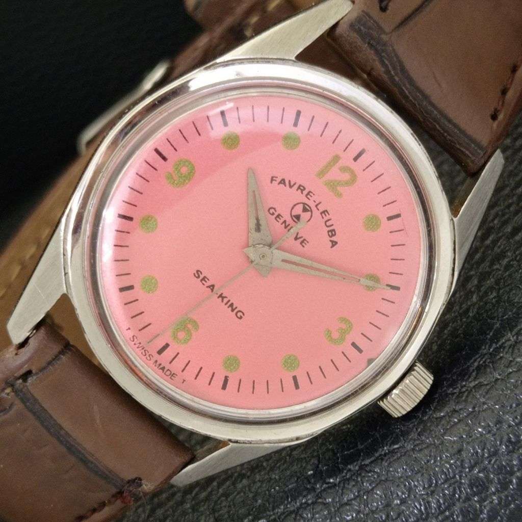 VINTAGE FAVRE LEUBA SEA KING HAND-WINDING SWISS MENS SIGN CASE WATCH a702018-1
