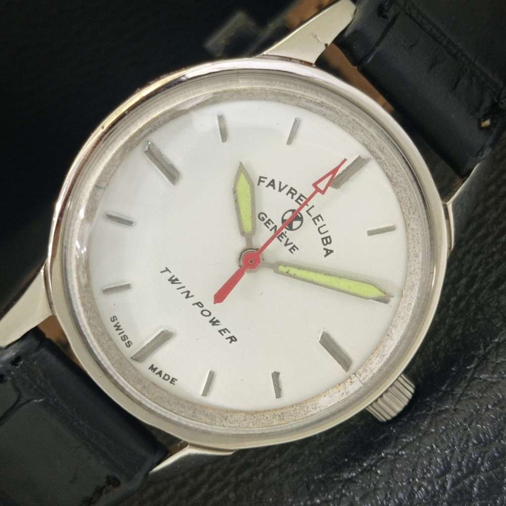 VINTAGE FAVRE LEUBA TWIN POWER 253 HAND-WINDING SWISS MENS WHITE WATCH a703846-1