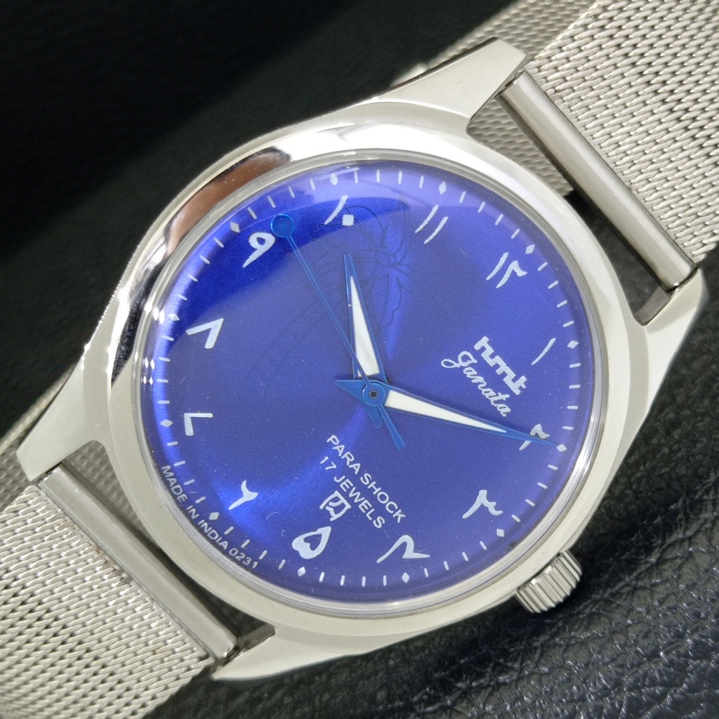 VINTAGE HMT JANATA HAND-WINDING INDIAN MENS ARABIC BLUE DIAL WATCH a441029-1