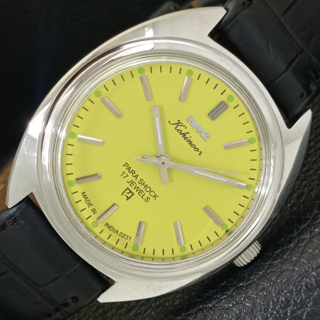 VINTAGE HMT KOHINOOR HAND-WINDING INDIAN MENS YELLOW COLOR DIAL WATCH a441001-1
