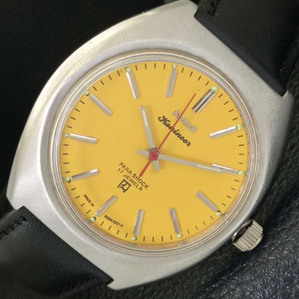 VINTAGE HMT KOHINOOR HAND-WINDING INDIAN MENS YELLOW COLOR DIAL WATCH a702063-1