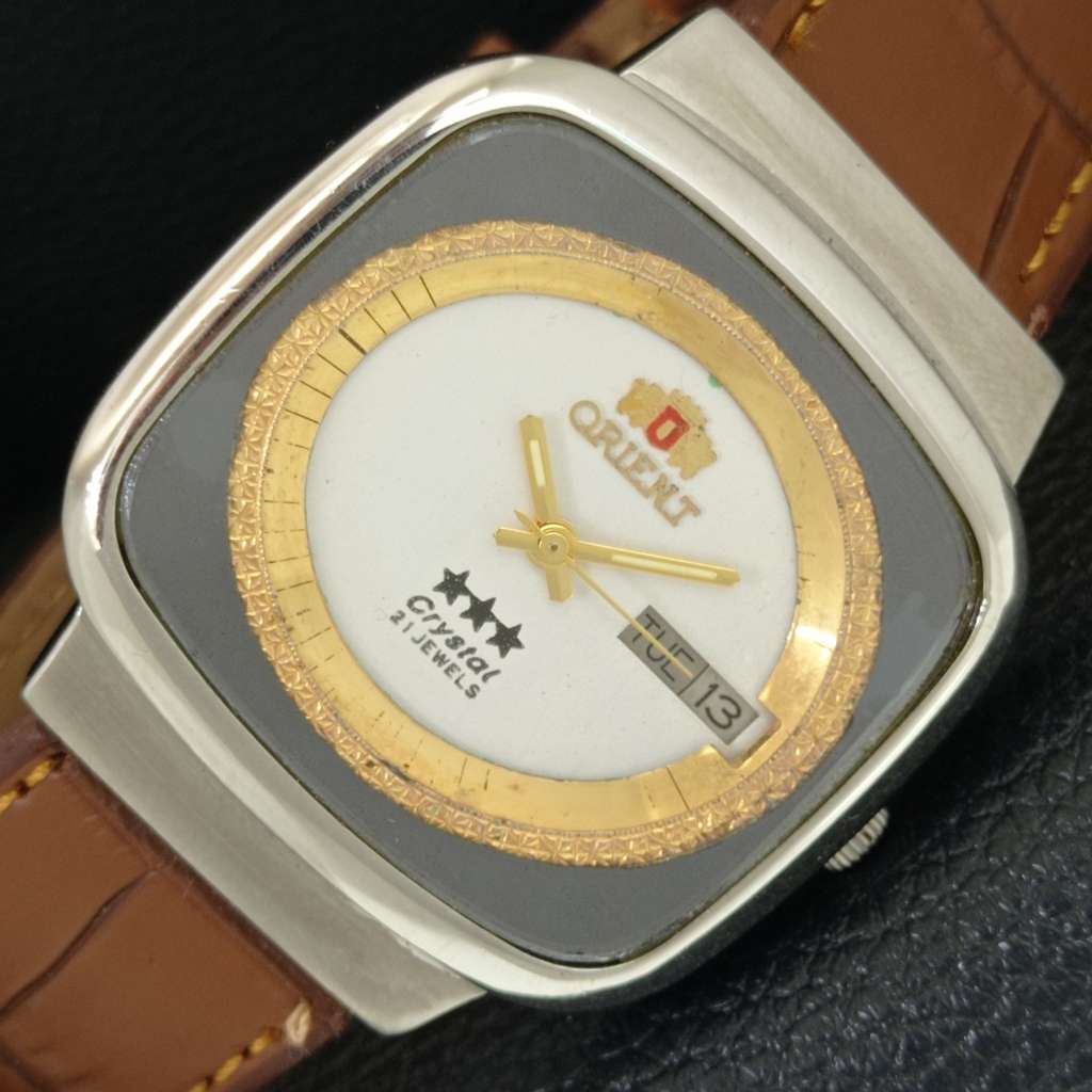 VINTAGE ORIENT CRYSTAL AUTOMATIC 46941 JAPAN MENS WHITE DIAL WATCH a704850-1