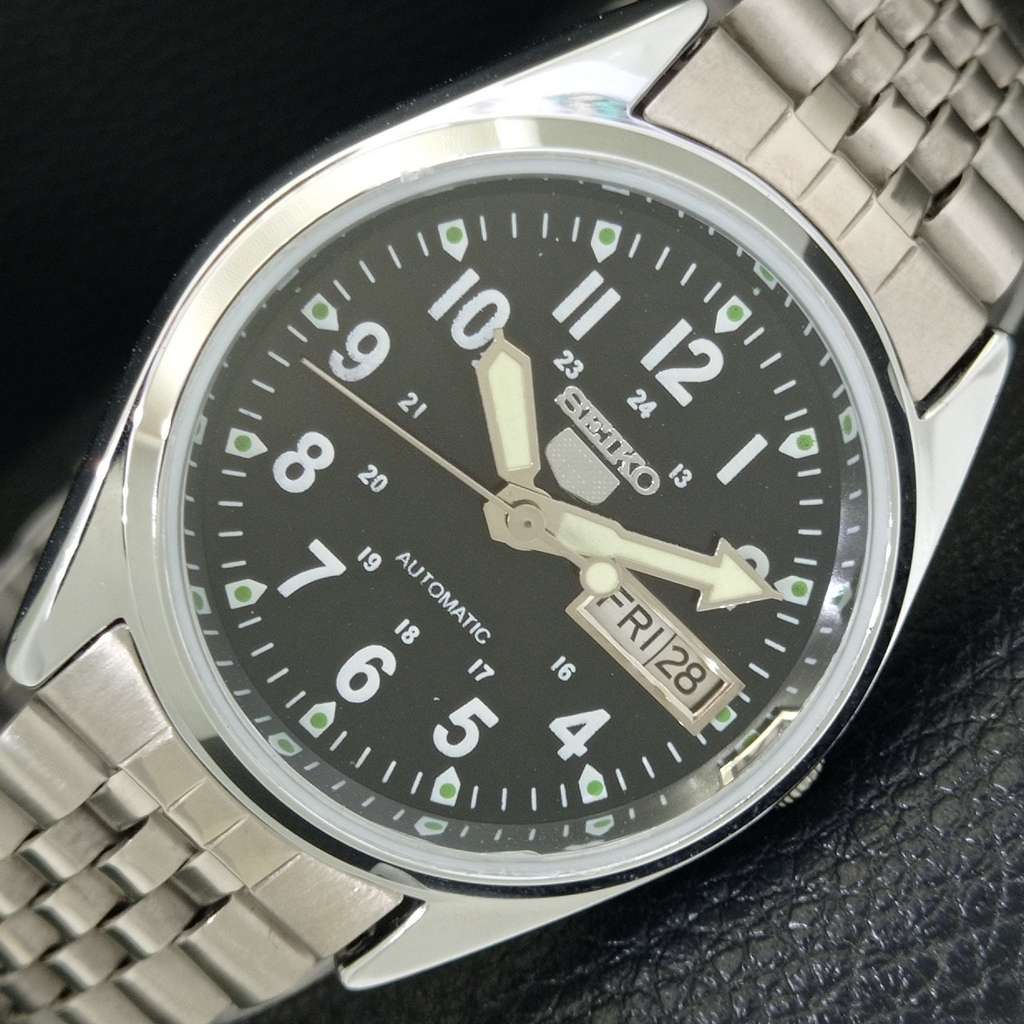 VINTAGE REFURBISHED SEIKO 5 AUTOMATIC 6309A JAPAN MENS BLACK WATCH a441647-1