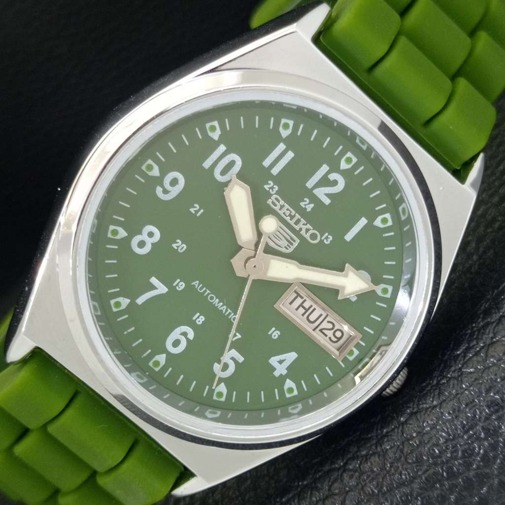 VINTAGE REFURBISHED SEIKO 5 AUTOMATIC 6309A JAPAN MENS GREEN WATCH a441761-1