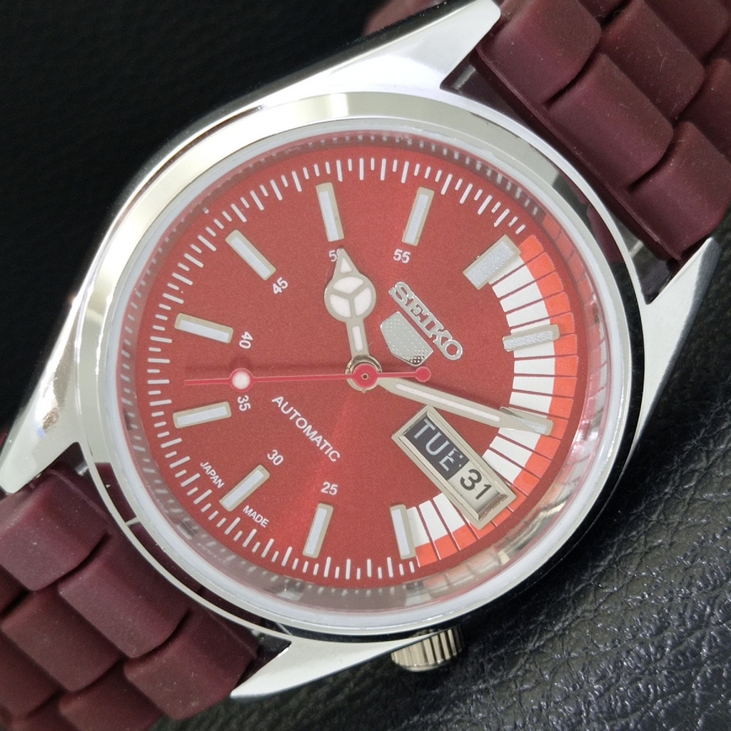 VINTAGE REFURBISHED SEIKO 5 AUTOMATIC 6309A JAPAN MENS RED DIAL WATCH a441132-1