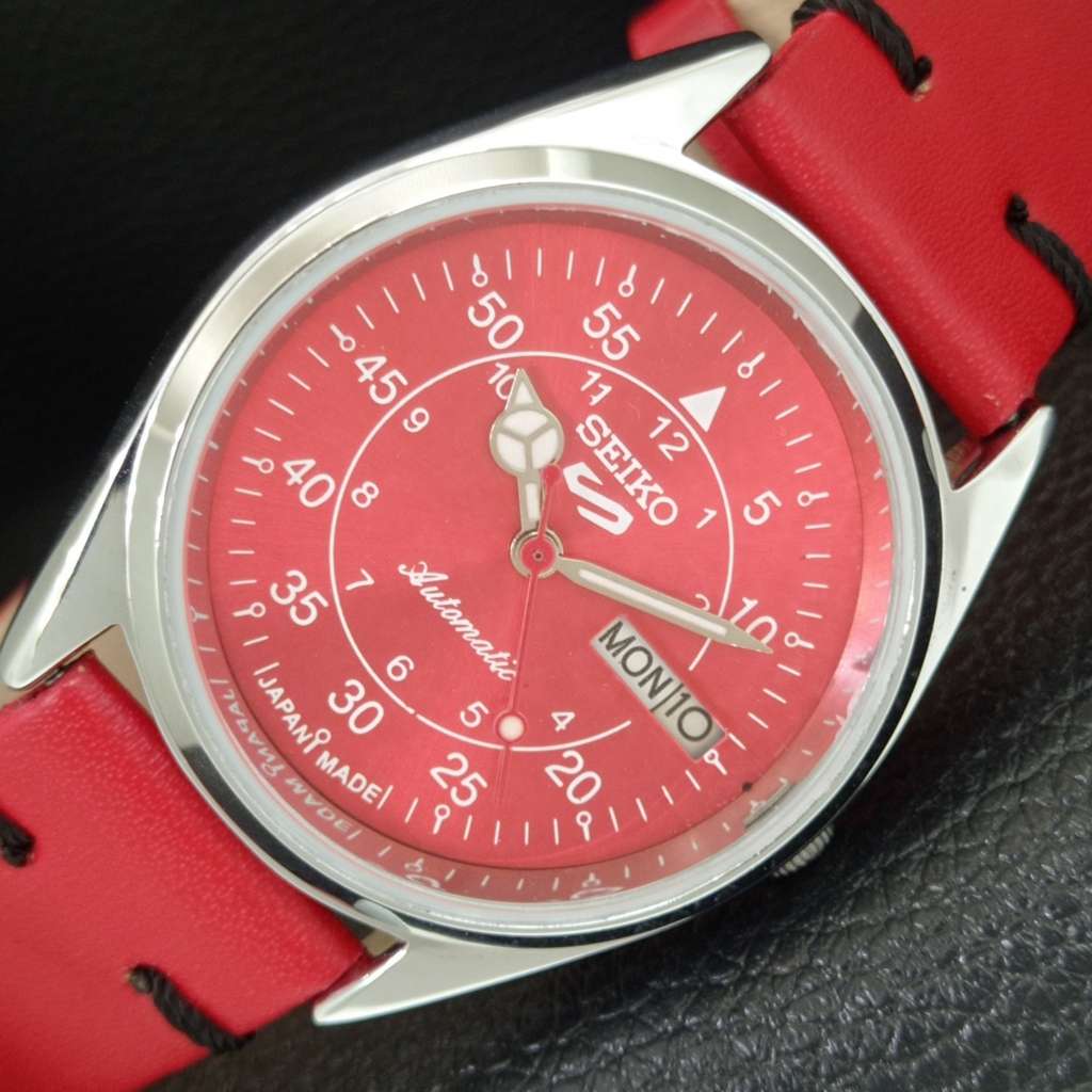 VINTAGE REFURBISHED SEIKO 5 AUTOMATIC 6309A JAPAN MENS RED DIAL WATCH a442310-1