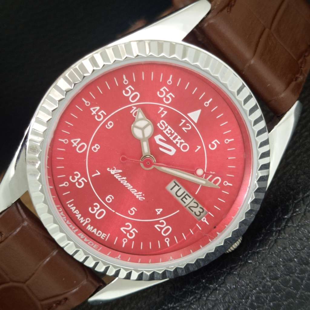VINTAGE REFURBISHED SEIKO 5 AUTOMATIC 6309A JAPAN MENS RED DIAL WATCH a442968-1