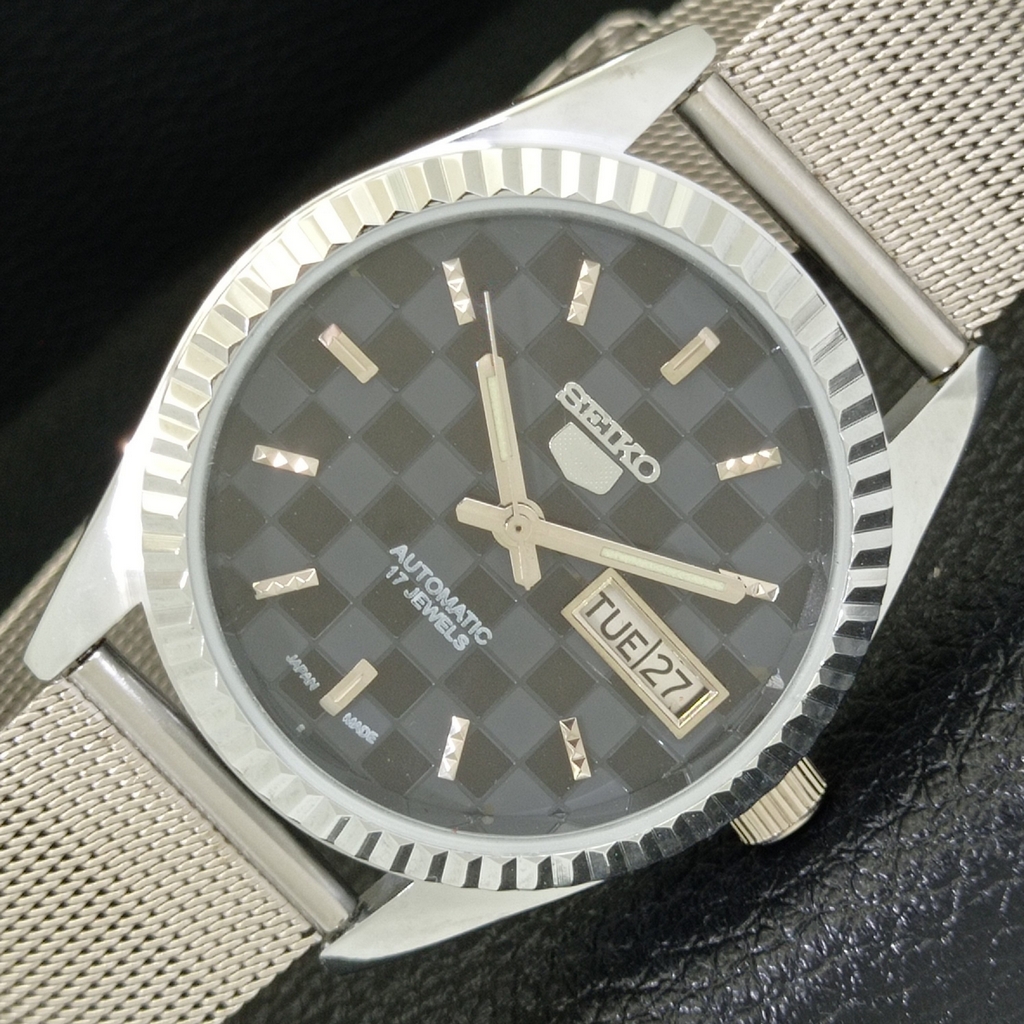 VINTAGE REFURBISHED SEIKO 5 AUTOMATIC JAPAN MENS BLACK DIAL WATCH a440333-1