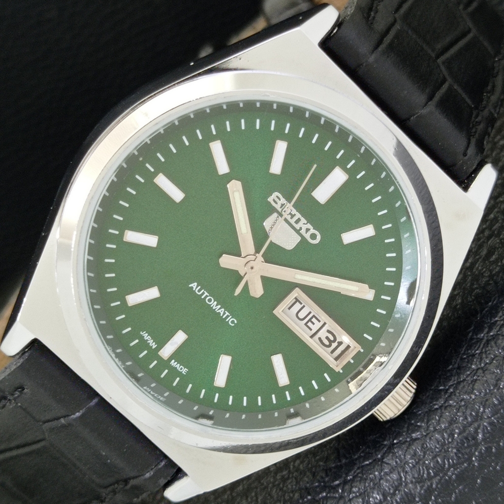 VINTAGE REFURBISHED SEIKO 5 AUTOMATIC JAPAN MENS GREEN DIAL WATCH a440639-6
