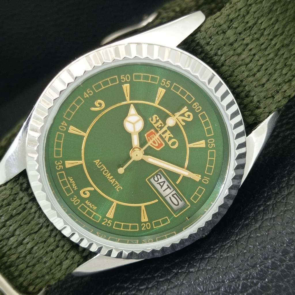 VINTAGE REFURBISHED SEIKO 5 AUTOMATIC JAPAN MENS GREEN DIAL WATCH a443285-1