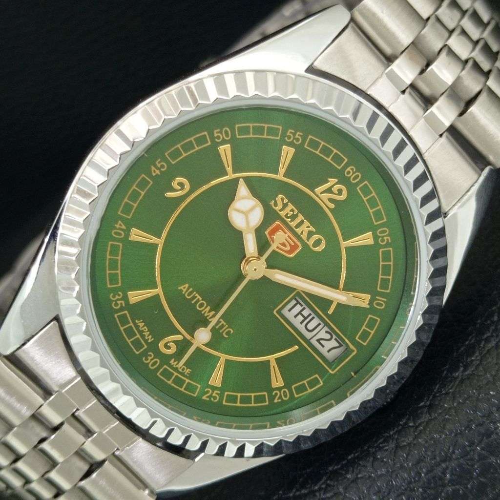 VINTAGE REFURBISHED SEIKO 5 AUTOMATIC JAPAN MENS GREEN DIAL WATCH a443288-1
