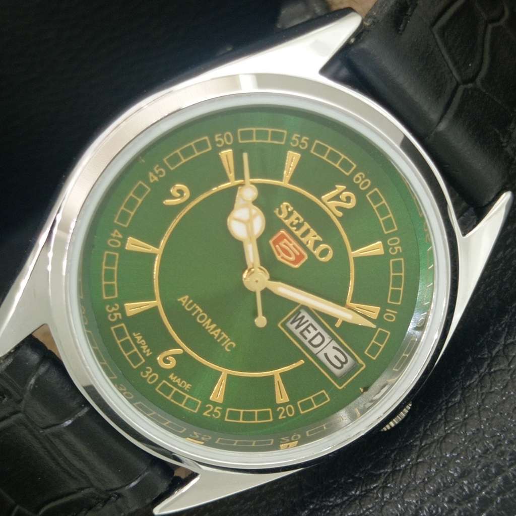 VINTAGE REFURBISHED SEIKO 5 AUTOMATIC JAPAN MENS GREEN DIAL WATCH a443327-1