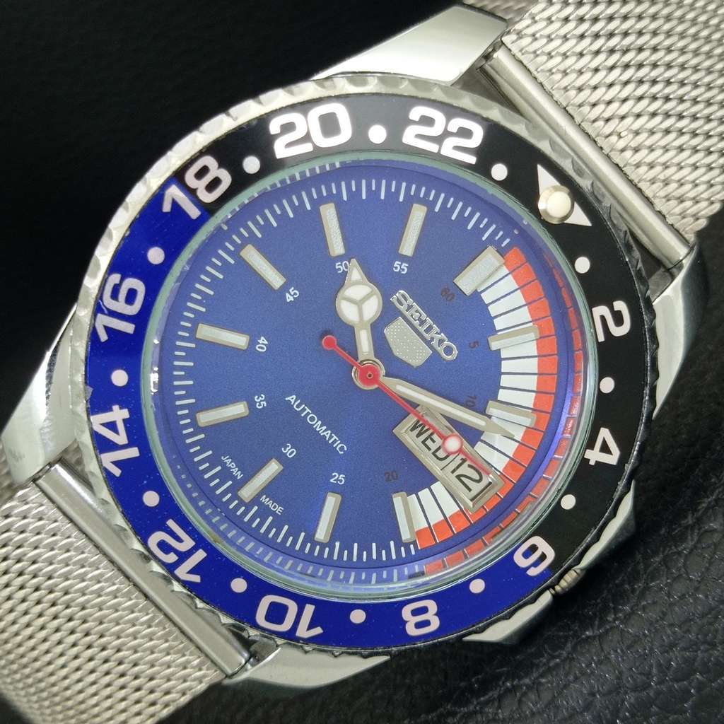 VINTAGE REFURBISHED SEIKO 5 AUTOMATIC JAPAN MENS MOVABLE BEZEL WATCH a443306-1