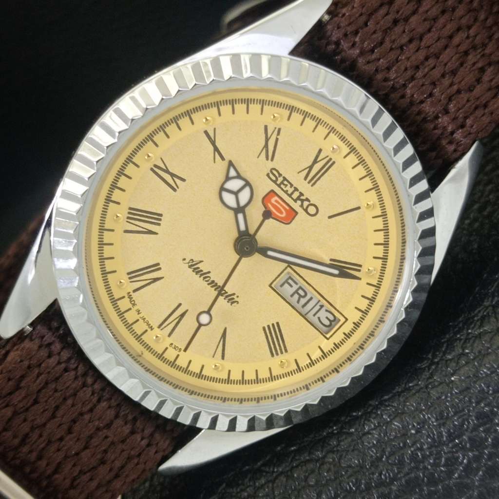 VINTAGE REFURBISHED SEIKO 5 AUTOMATIC JAPAN MENS ROMAN FIGURE WATCH a442024-4