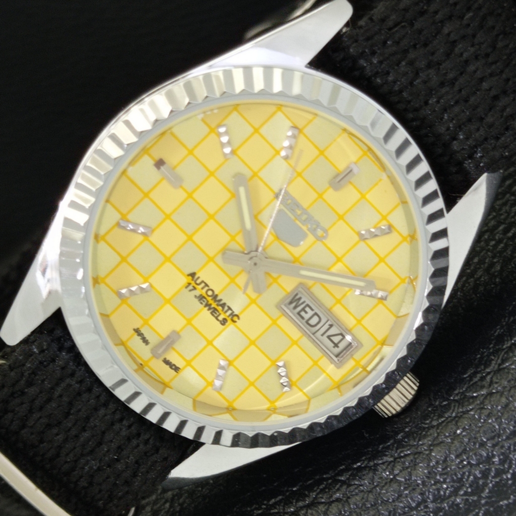 VINTAGE REFURBISHED SEIKO 5 AUTOMATIC JAPAN MENS YELLOW DIAL WATCH a440397-1