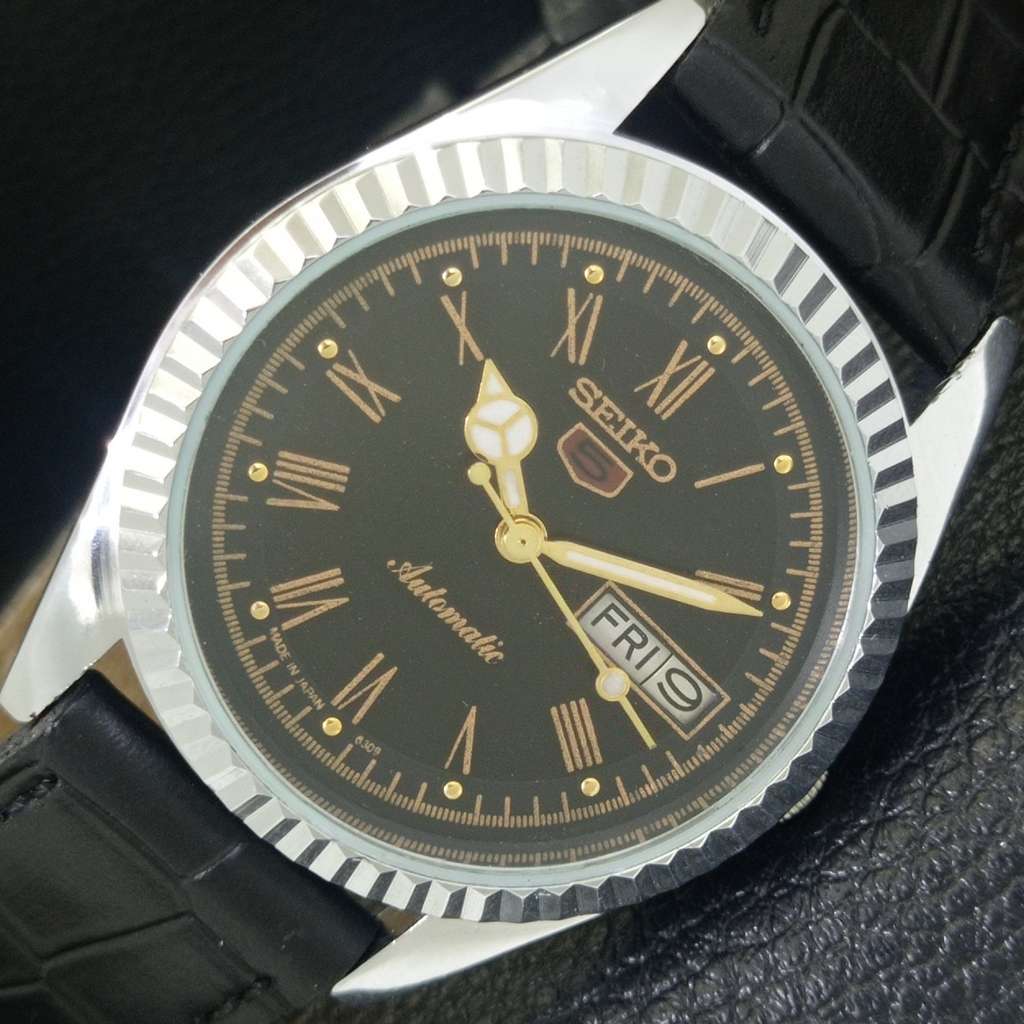 VINTAGE REFURBISHED SEIKO 5 AUTOMATIC JAPAN ROMAN FIGURE MENS WATCH a442039-g