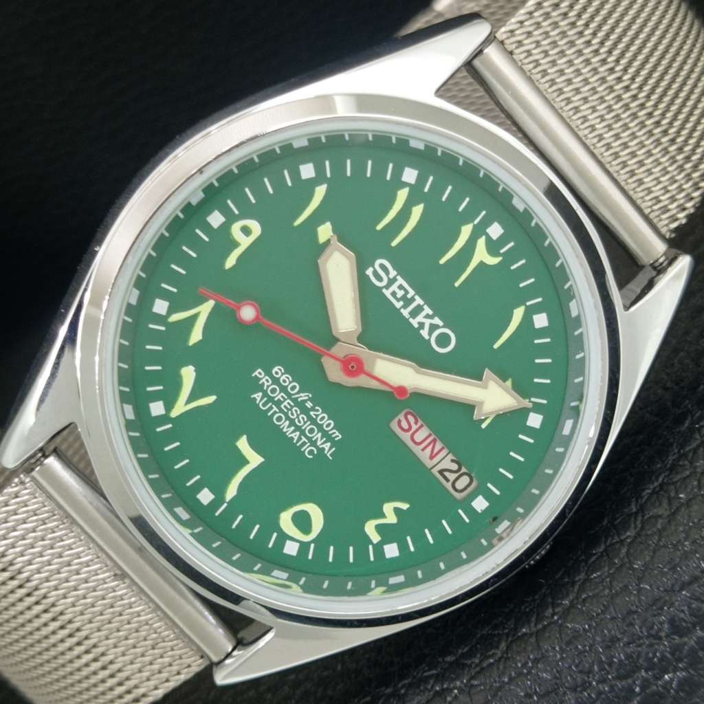 VINTAGE REFURBISHED SEIKO AUTOMATIC 6309A JAPAN MENS GREEN DIAL WATCH a442728-1