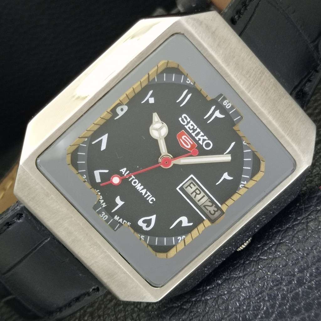 VINTAGE SEIKO 5 AUTOMATIC 6309A JAPAN MENS ARABIC BLACK DIAL WATCH a702532-1