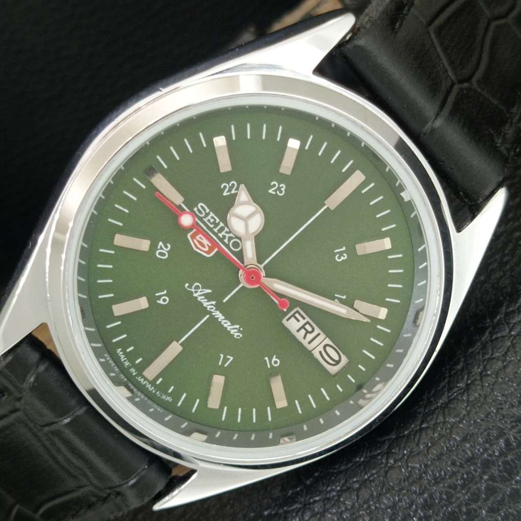 VINTAGE SEIKO 5 AUTOMATIC 6309A REFURBISHED JAPAN MENS GREEN WATCH a442770-1