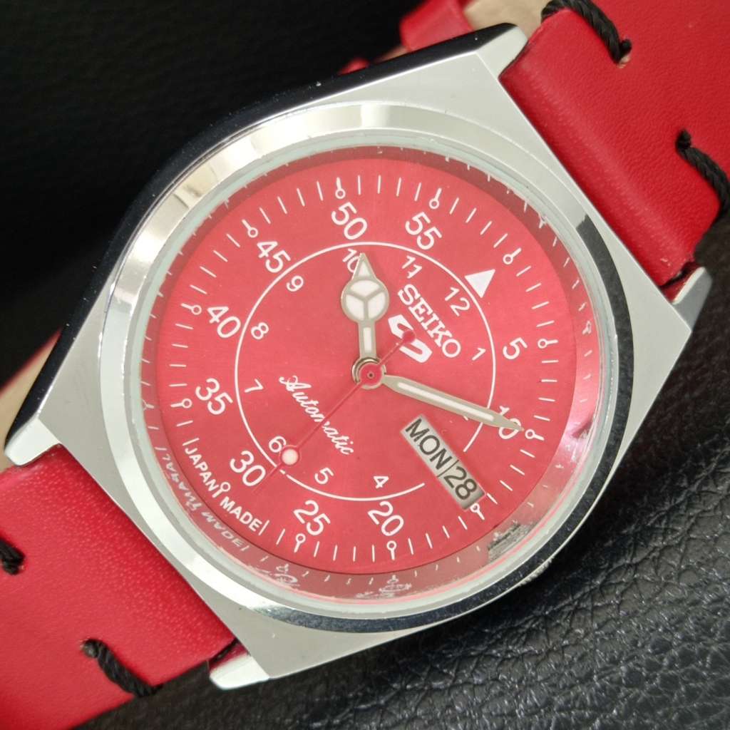 VINTAGE SEIKO 5 AUTOMATIC 6309A REFURBISHED JAPAN MENS RED DIAL WATCH a442228-1