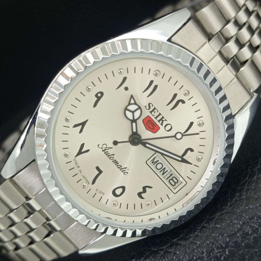 VINTAGE SEIKO 5 AUTOMATIC 6309A REFURBISHED JAPAN MENS SILVER WATCH a442497-1