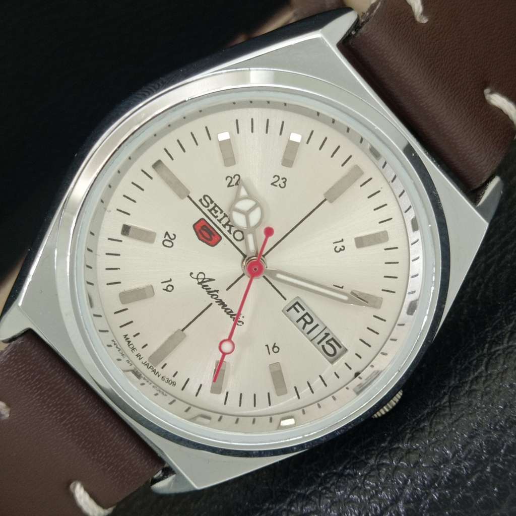 VINTAGE SEIKO 5 AUTOMATIC 6309A REFURBISHED JAPAN MENS SILVER WATCH a442876-1