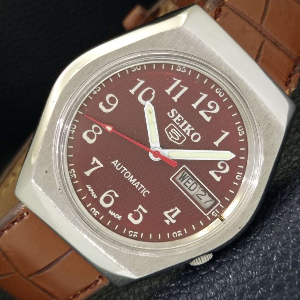 VINTAGE SEIKO 5 AUTOMATIC 7009A JAPAN MENS MAROON COLOR DIAL WATCH a702350-1