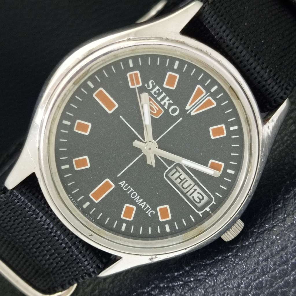 VINTAGE SEIKO 5 AUTOMATIC JAPAN 6309A MENS BLACK COLOR DIAL WATCH a702724-1