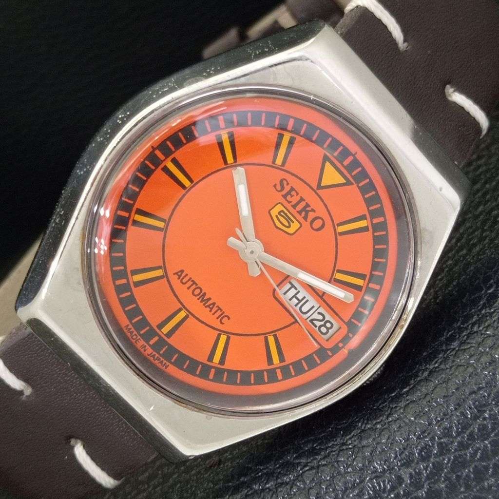 VINTAGE SEIKO 5 AUTOMATIC JAPAN 6309A MENS ORANGE COLOR DIAL WATCH a702737-1