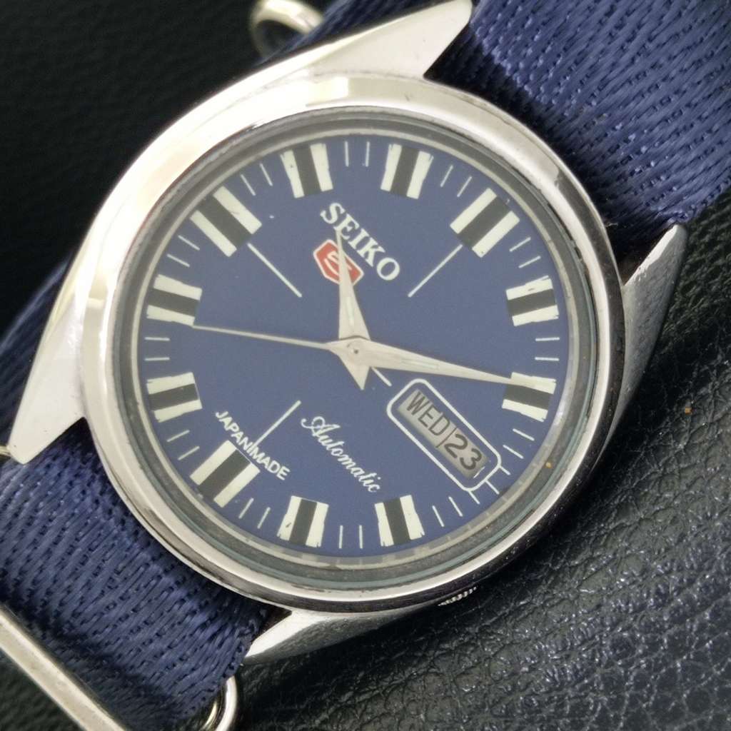 VINTAGE SEIKO 5 AUTOMATIC JAPAN 7009A MENS BLUE COLOR DIAL WATCH a702109-1