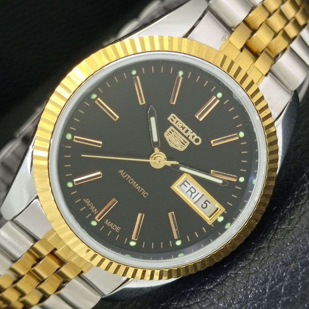 VINTAGE SEIKO 5 AUTOMATIC REFURBISHED JAPAN MENS BLACK DIAL WATCH a442104-1