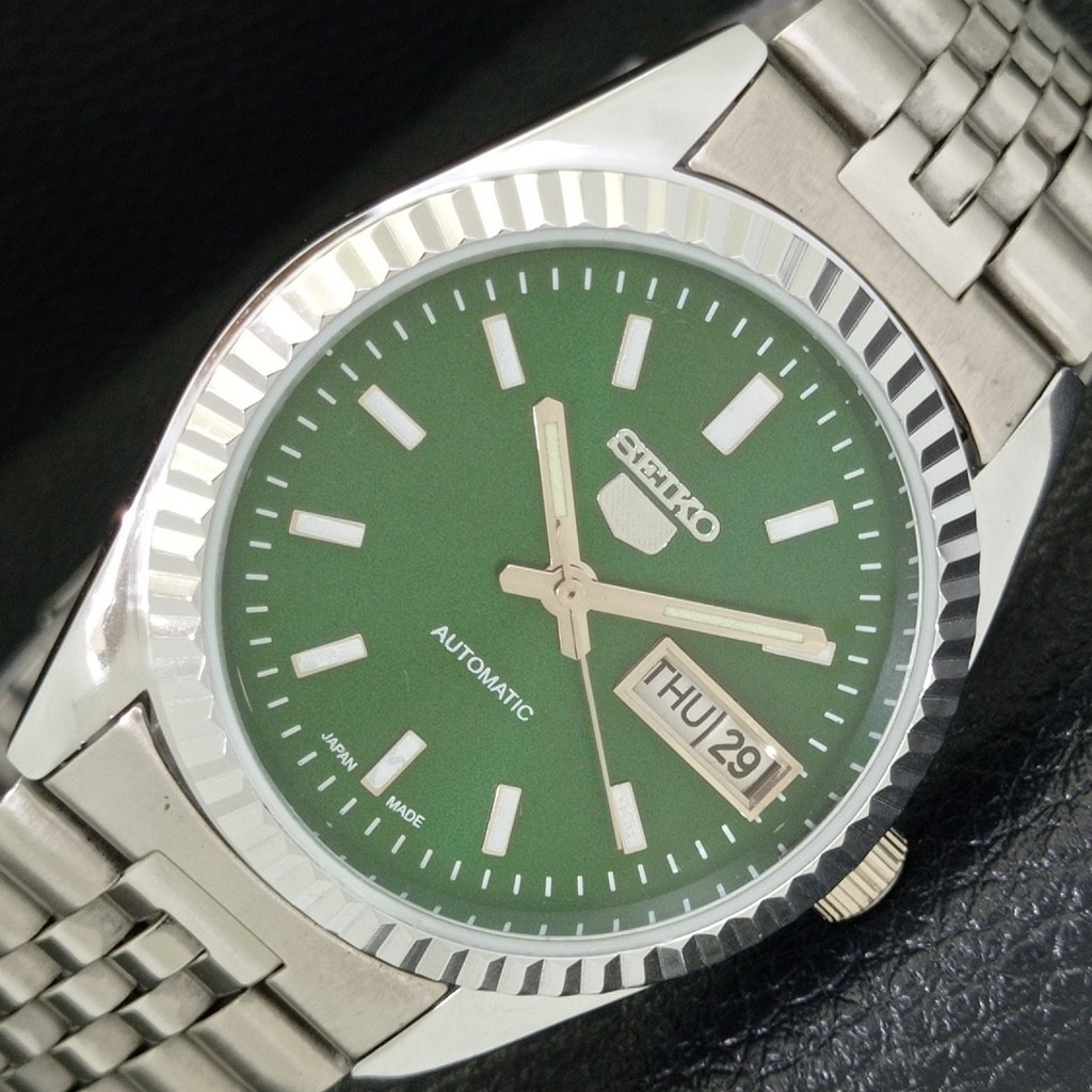 VINTAGE SEIKO 5 AUTOMATIC REFURBISHED JAPAN MENS GREEN DIAL WATCH a440565-1