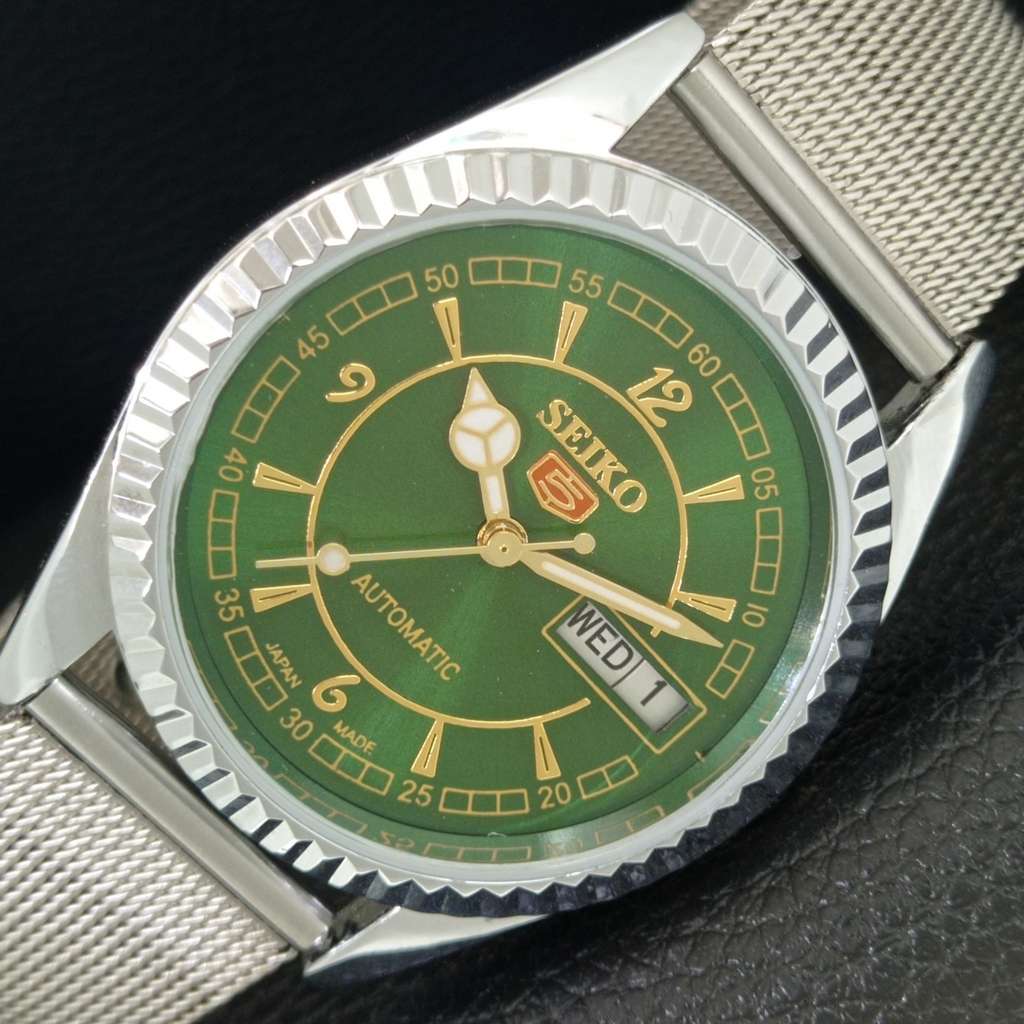 VINTAGE SEIKO 5 AUTOMATIC REFURBISHED JAPAN MENS GREEN DIAL WATCH a443276-1
