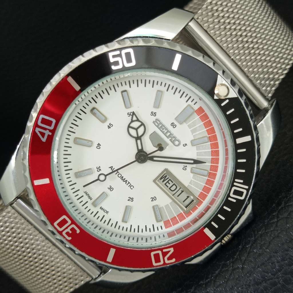 VINTAGE SEIKO 5 AUTOMATIC REFURBISHED JAPAN MENS MOVABLE BEZEL WATCH a443307-1
