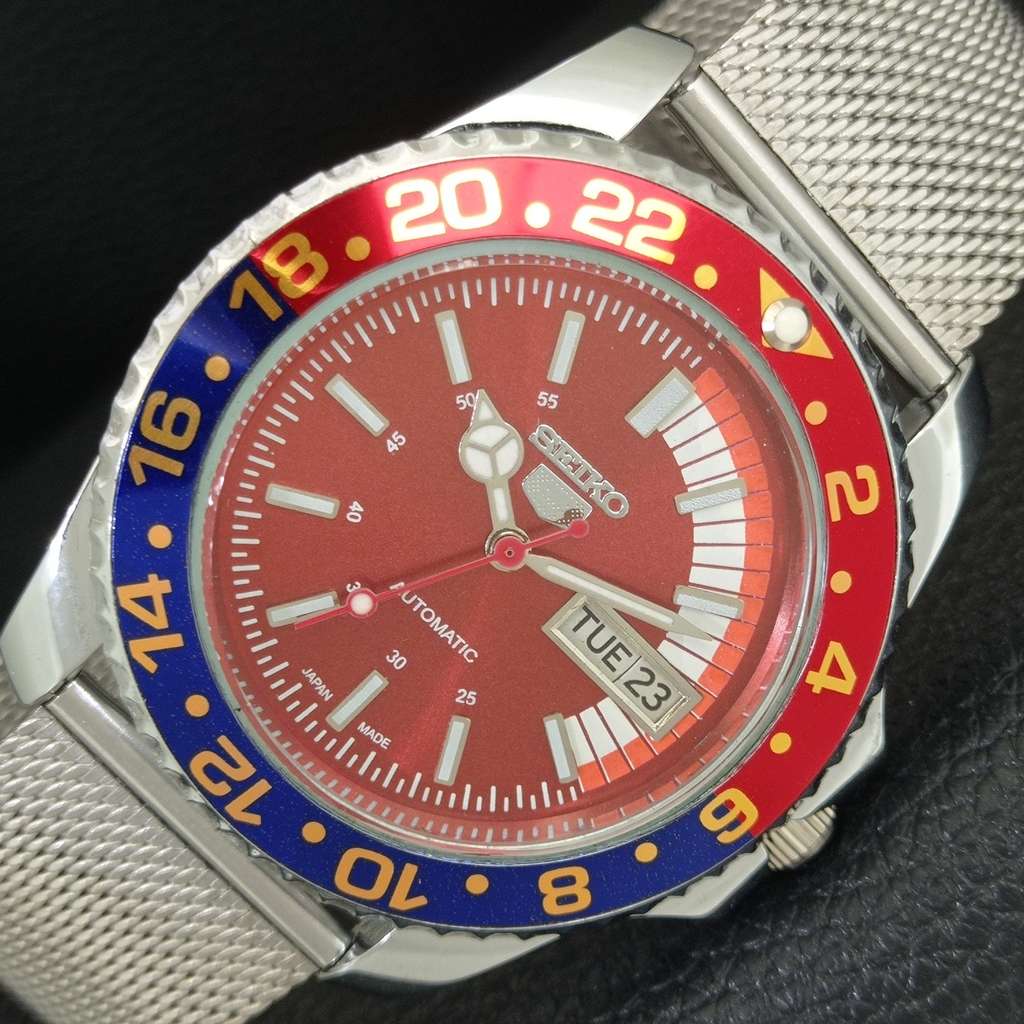 VINTAGE SEIKO 5 AUTOMATIC REFURBISHED JAPAN MENS MOVABLE BEZEL WATCH a443311-1