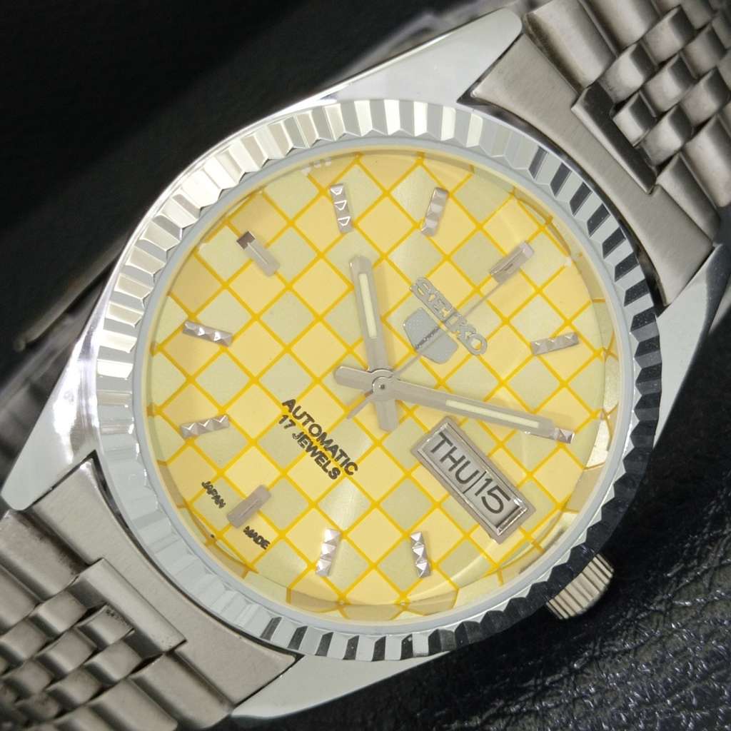 VINTAGE SEIKO 5 AUTOMATIC REFURBISHED JAPAN MENS YELLOW DIAL WATCH a440367-a