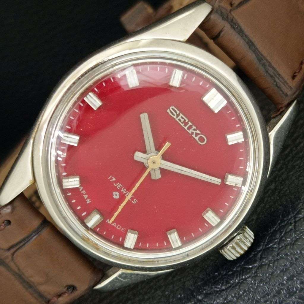 VINTAGE SEIKO HAND-WINDING 66B JAPAN BOY REFURBISHED RED DIAL WATCH a704664-1