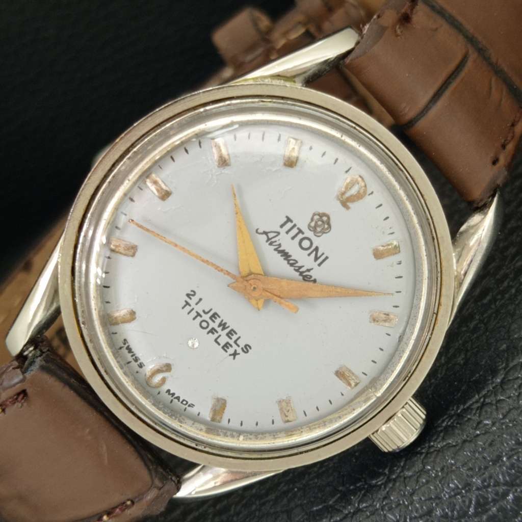 VINTAGE TITONI AIRMASTER TITOFLEX HAND-WINDING SWISS MENS GREY WATCH a703202-1