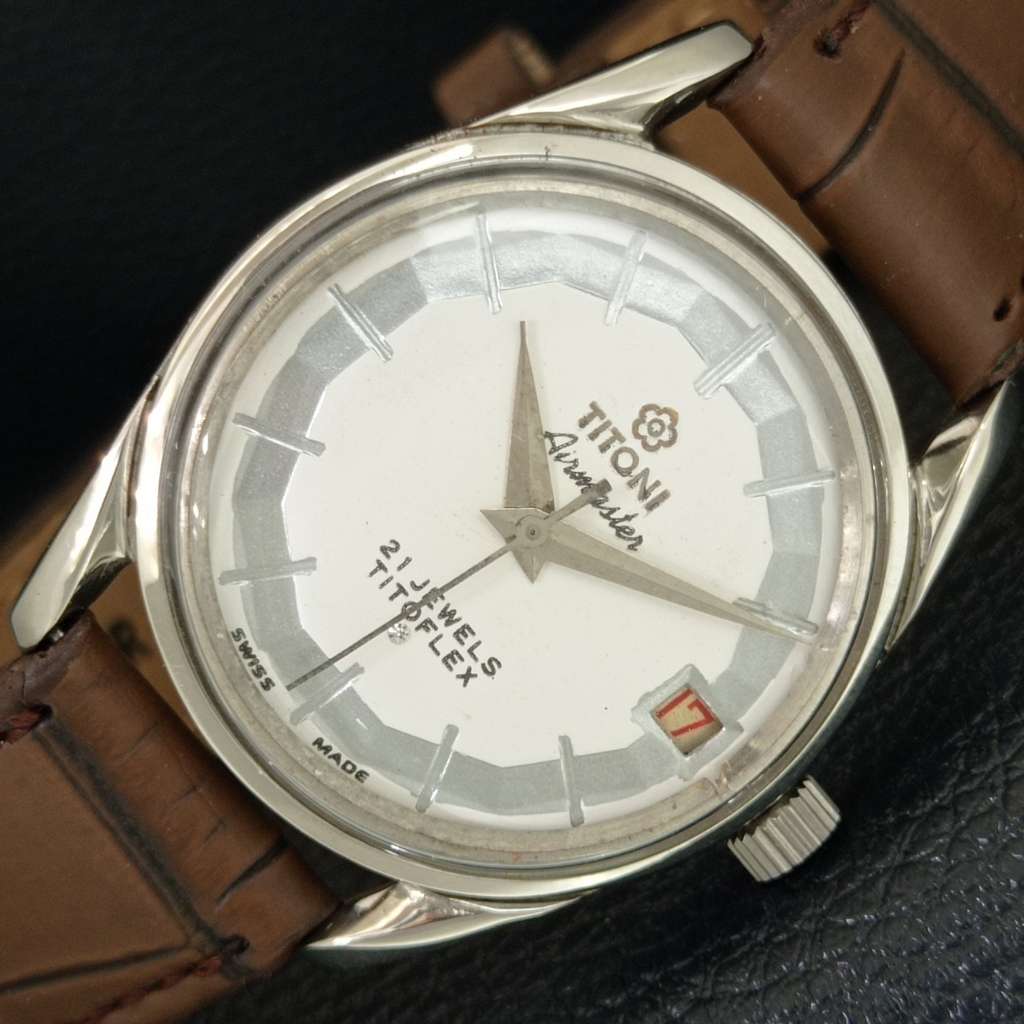 VINTAGE TITONI AIRMASTER TITOFLEX HAND-WINDING SWISS MENS WHITE WATCH a705131-1