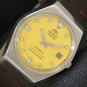 AUTOMATIC 46961 VINTAGE ORIENT JAPAN MENS YELLOW COLOR DIAL WATCH a701832-1