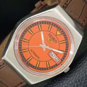 JAPAN 6309A VINTAGE SEIKO 5 AUTOMATIC MENS ORANGE COLOR DIAL WATCH a702736-1